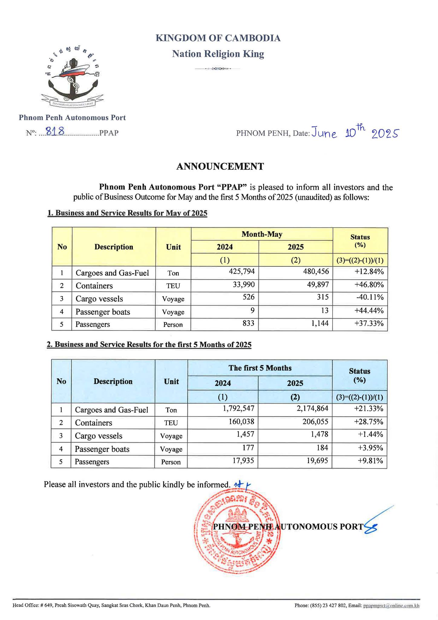 Business Outcome for May and the First 5 Months of 2025