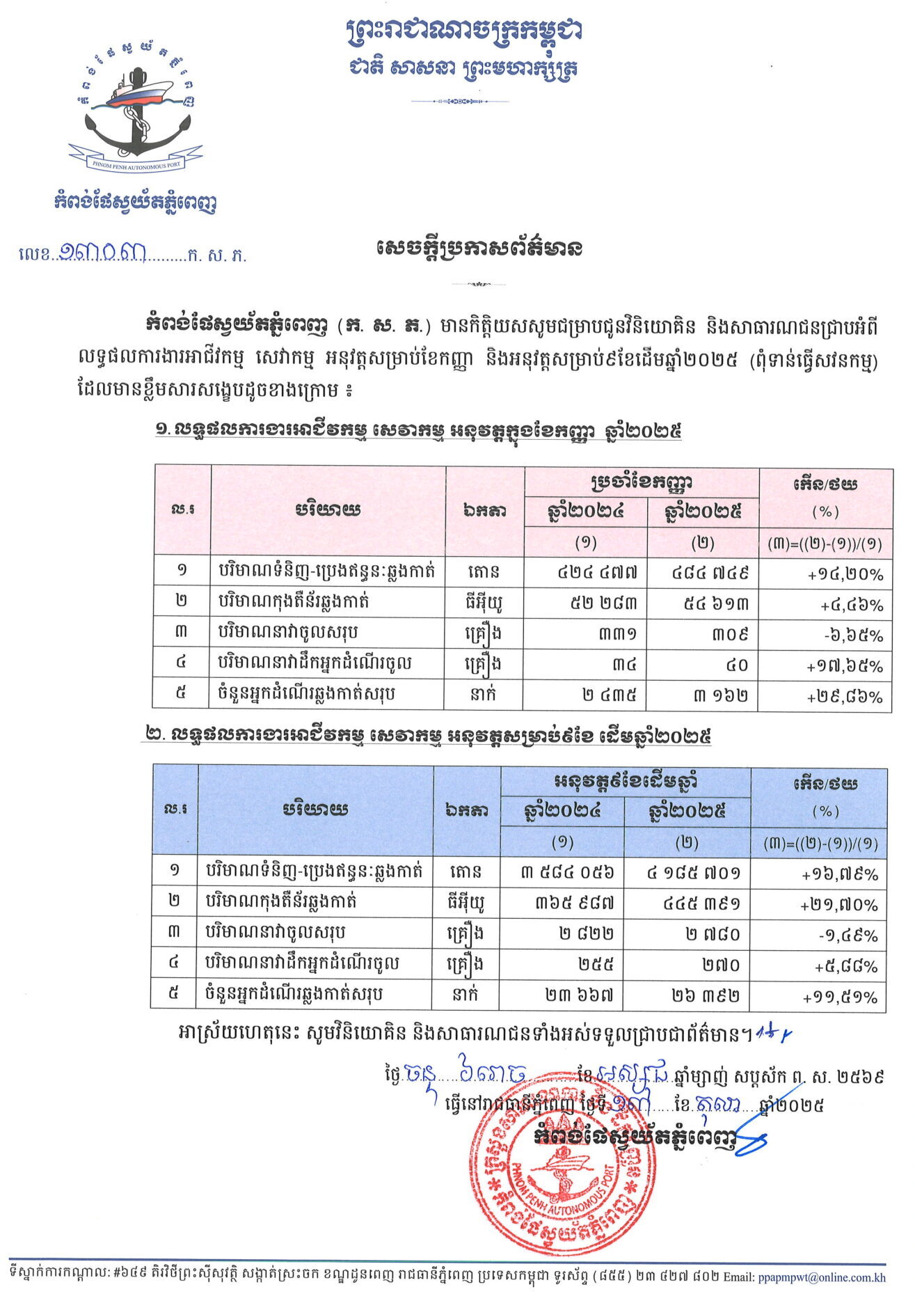 លទ្ធផលការងារអាជីវកម្ម សេវាកម្ម អនុវត្តសម្រាប់ខែកញ្ញា និង ៩ខែដើមឆ្នាំ២០២៥