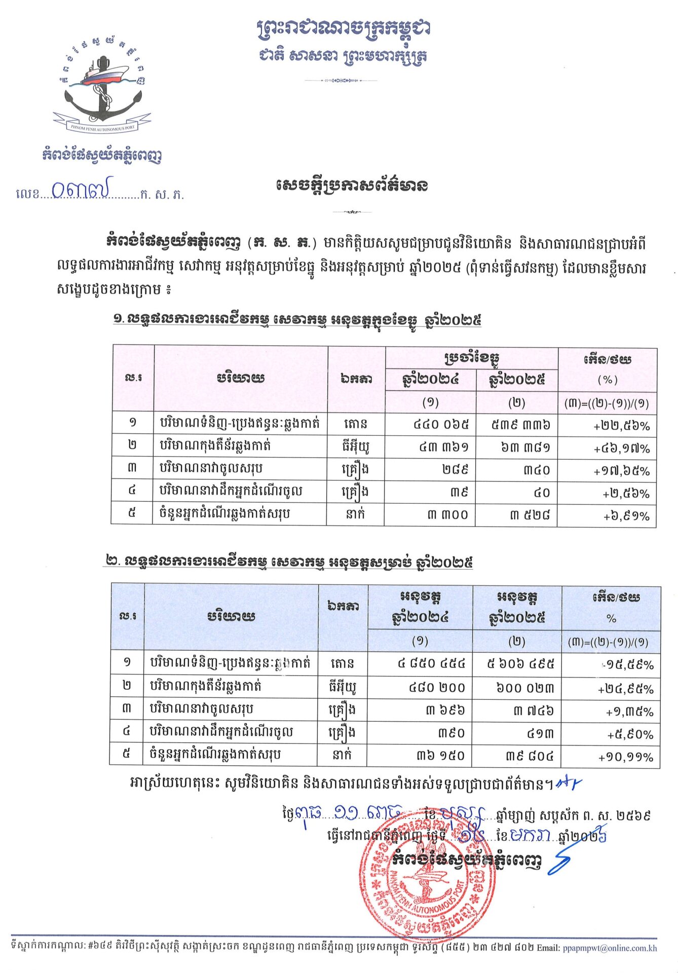 លទ្ធផលការងារអាជីវកម្ម សេវាកម្ម អនុវត្តសម្រាប់ខែធ្នូ និងសម្រាប់ឆ្នាំ២០២៥ (ពុំទាន់ធ្វើសវនកម្ម)
