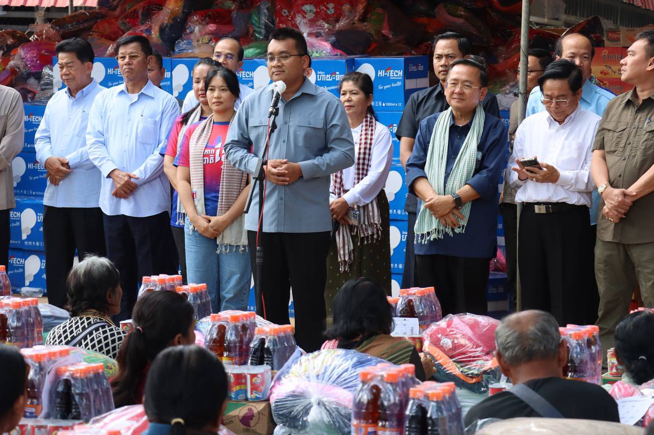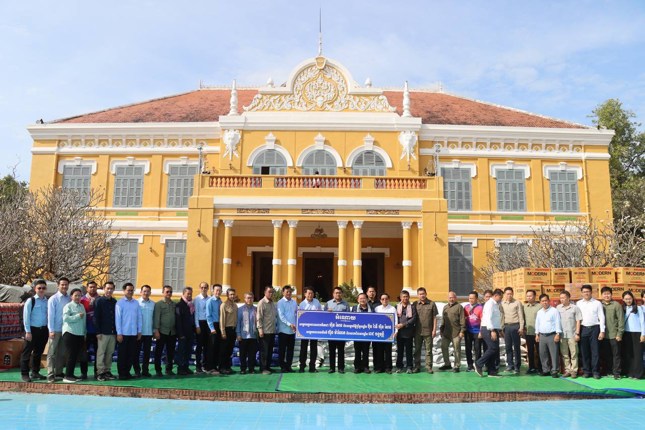 នាព្រឹកថ្ងៃអាទិត្យ ទី១៤ ខែធ្នូ ឆ្នាំ២០២៥ ឯកឧត្តម ហ៊ឺ បាវី ប្រតិភូរាជរដ្ឋាភិបាលកម្ពុជា ទទួលបន្ទុកជាប្រធានអគ្គនាយក កំពង់ផែស្វយ័តភ្នំពេញ (ក.ស.ភ.) និងសហការី ក.ស.ភ. បានអញ្ជើញចូលរួមប្រគល់អំណោយក្រោមអធិបតីភាពឯកឧត្តម ប៉េង ពោធិ៍នា រដ្ឋមន្រ្តីក្រសួងសាធារណការ និងដឹកជញ្ជូន តំណាងដ៏ខ្ពង់ខ្ពស់ សម្តេចអគ្គមហាសេនាបតីតេជោ ហ៊ុន សែន ប្រធានព្រឹទ្ធសភា និងសម្តេចកតិ្តព្រឹទ្ធបណ្ឌិត ប៊ុន រ៉ានី ហ៊ុន សែន និង សម្ដេចមហាបវរធិបតី ហ៊ុន ម៉ាណែត នាយករដ្ឋមន្ត្រី និងលោកជំទាវបណ្ឌិត ពេជ្រ ចន្ទមុនី្ន ជូនដល់រដ្ឋបាលខេត្តបាត់ដំបង ដែលតំណាងដោយ ឯកឧត្តម សុខ លូ អភិបាលនៃគណៈអភិបាលខេត្តបាត់ដំបង ដើម្បីចែកជូនដល់វីរកងទ័ពការពារព្រំដែន និងបងប្អូនប្រជាពលរដ្ឋភៀសសឹកក្នុងភូមិសាស្ត្រខេត្តបាត់ដំបង។